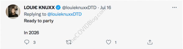 Mr. Todd Williams, aka Louie Knuxx, received his second dose of experimental Pfizer mRNA on July 15, according to his Twitter page. He reported sore arms the following morning, but no other adverse effects. He also said he was “ready to party.”
