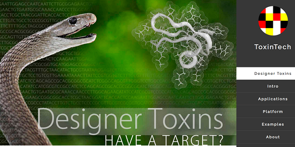 Interestingly, the ToxinTech home page feature image asks a rather blunt question that could be easily misconstrued: Designed Toxins… Have a Target?