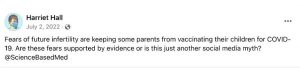 “Skep Doc” Harriet Hall wasn’t just “skeptical” of vaccine skeptics, she was critical and insulting about their very existence, referring to them all as stupid idiots who should be analyzed for their irrational thinking. She capped all vaccine skeptics as propagators of social media myths, regarding the clot shots causing heart attacks, vascular clots, and infertility. No, don’t you go worrying about all those social media myths, because Dr. Harriet Hall just got three FREE Covid jabs at the grocery store and there was no line at all. Step right up, parents and children of all ages, and get the free EXPERIMENTAL gene-mutating, toxic-spike-protein-prion-creating clot shot that is only the most dangerous “vaccine” ever created.