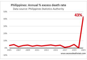 The Philippine House of Representatives is now actively investigating the surge in excess deaths and the decline in births following the rollout of the COVID-19 vaccines. The Joint House Committees on Public Order and Safety on Human Rights are addressing a 43% rise in mortality rates from 2021-2023, compared to a 2% rise in previous years (2016-2020).